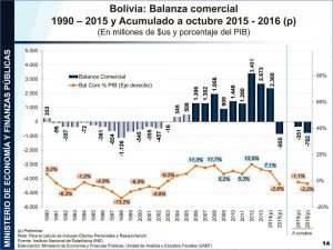 Cáceres, precisó que el Presupuesto contempla un déficit de 7.8 por ciento para el 2017, mientras que la brecha comercial, sería de $us 1.300 millones.