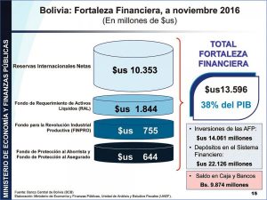 Para 2017, el ministro de Economía, Luis Arce, fijó 4,8% el crecimiento de la economía y 5.03% de inflación.