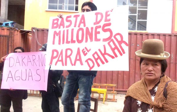 Para Abraham Paco, los carteles de las cuatro personas no decía nada en contra del Gobierno ni siquiera contra la actividad deportiva que se estaba realizando como es el Rally Dakar, solo decían: “La Paz ciudad maravilla sin agua. Bienvenido Dakar”, otro cartel decía: “La Paz quiere agua”.
