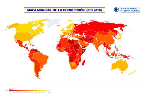 Bolivia cayó un punto, de 34 a 33, en el Índice de Percepción de la Corrupción (IPC) 2016 y se ubicó en el puesto 113 de 176 países que acaba de publicar la ONG Transparencia Internacional (TI).