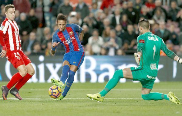 La irrupción de marzo proporcionó el liderato al Barcelona en una tarde que comenzó plácida con una goleada al Sporting (6-1) y el tropiezo del Real Madrid ante Las Palmas en el Bernabéu (3-3).