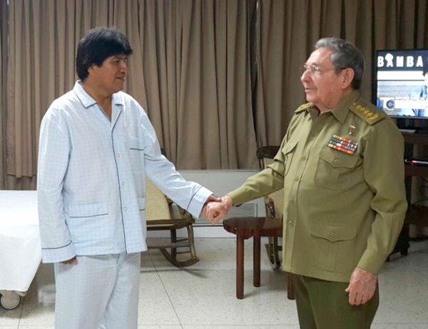 “Un encuentro fraterno entre dos grandes líderes del Abya Yala. El comandante Raúl Castro y el Canciller de Cuba conversaron 1/2 hora con Evo”, escribió en su cuenta de tuiter informó la ministra de Comunicación, Gísela López.