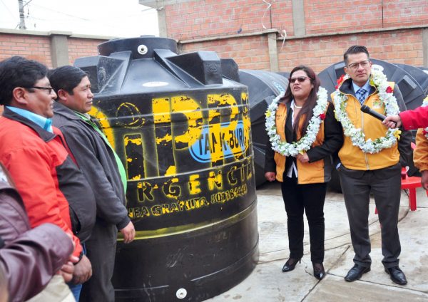 “Con la entrega de estos tanques la Alcaldía está precautelando la salud de la comunidad educativa del Distrito 5, toda vez que servirán para la limpieza de las baterías de baños y evitar la proliferación de enfermedades entre los niños. También hay la predisposición de la Subalcaldía de trasladar los tanques hasta cada establecimiento”, expresó la autoridad.