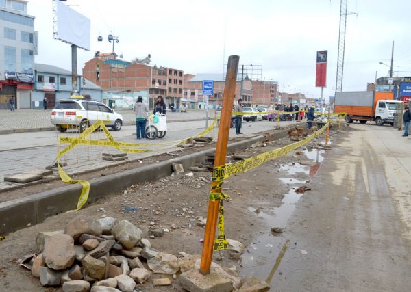 A pesar de su inauguración, aún quedan pendientes obras de reparación en inmediaciones de la estación de la Línea Azul del Teleférico de la zona 16 de Julio.