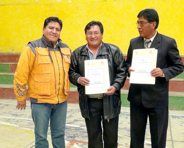 Con la entrega de los documentos de derecho propietario a la Unidad Educativa Villa Alemania de la zona Villa Adela Alemania del Distrito 3, el Gobierno Autónomo Municipal de El Alto (Gamea) comenzó el cronograma de entrega de estos papeles a colegios alteños.