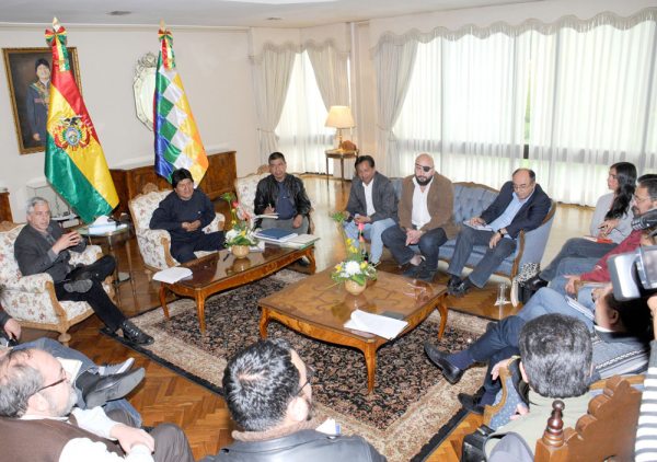 En la reunión estaban presentes el presidente, Evo Morales, el vicepresidente Álvaro García, ministros de Estado y el Defensor del Pueblo. Todos ellos decidieron conformar comisiones para delimitar diferentes estrategias a seguir a nivel nacional e internacional.