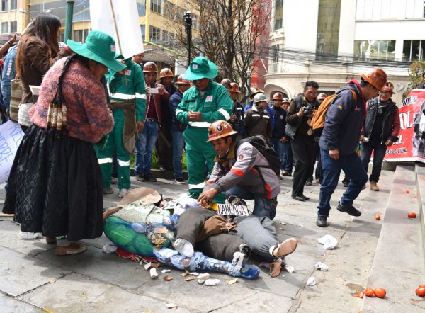 Jemio pidió que no se politice el conflicto, toda vez que una ruidosa marcha de los extrabajadores de LPL apoyados por miembros de la Federación Departamental de Trabajadores Mineros de La Paz y de la Central Obrera Departamental ocasionaron daños al bien público por la detonación de cachorros de dinamitas.