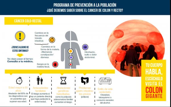 El Instituto de Gastroenterología Boliviano Japonés busca promover la detección temprana del cáncer colo-rectal, a través de la exposición de una maqueta gigante de un colon, que tiene por objetivo prevenir la enfermedad.