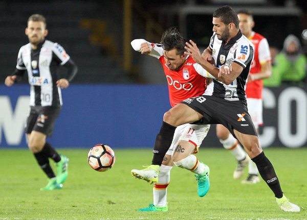 El Independiente Santa Fe y el Santos empataron ayer 0-0 en un duelo por la tercera jornada del Grupo 2 de la Copa Libertadores que pasó por fases muy anodinas y en el que el acierto y la diosa Fortuna eludieron a los futbolistas. Con este resultado Santos sigue al frente de la clasificación del grupo 2, ahora con 5 puntos mientras que Santa Fe empata a cuatro puntos con The Strongest, que es tercero. En el fondo de la clasificación yace con 2 el Sporting Cristal. Prácticamente fueron necesarios 45 minutos para que los equipos se desperezaran y gozaran de las primeras ocasiones de gol que sacaron a los aficionados del letargo. Santos se refugió en una buena defensa a la espera de que El Expreso Rojo, que pecó de cierto nerviosismo e impaciencia, cometiera un error. Ante la imposibilidad de elaborar jugadas por el centro, ambos equipos hicieron incursiones por las bandas sin éxito.