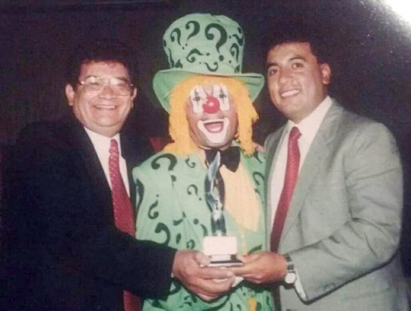 Este domingo engalana El Retrovisor una memorable fotografía, gentileza de nuestro amigo José Carlos “Jota” Fernández, cuando Sábados de la Alegría era reconocido por los Premios Maya como el mejor programa de entretenimiento 2001-2002. En la imagen, los entonces conductores del espacio televisivo: Edgar “Pato” Patiño, el payasito Cosquillas y el “Jota”.