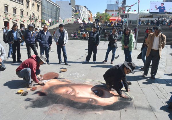 Con un poco de pintura fueron plasmando la imagen, ante un público espectante que esperaba ver culminada la obra; artistas anónimos que no dejan de imprimir sus sueños creencias y emociones a través del arte.