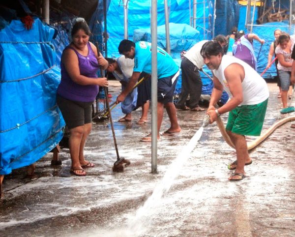 “Desde muy temprano estamos realizando la limpieza, desratización y fumigación con las caseritas del mercado. Las comerciantes participaron con baldes, cepillos y escobas en mano”, dijo el jefe de la Unidad de Mercados, Jhoasir Calamani.