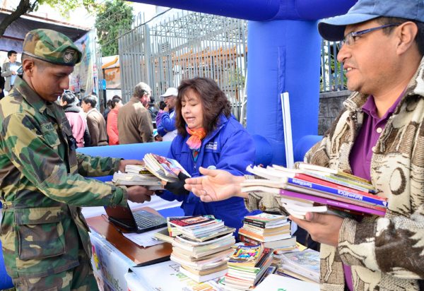 Desde las 09 de la mañana, las brigadas conformadas por soldados y marineros, servidores públicos y voluntarios de las escuelas de Formación de Maestros se movilizaron casa por casa en diferentes barrios de las ciudades capitales para pedir la donación de libros y textos de lectura que las familias ya no utilizan.