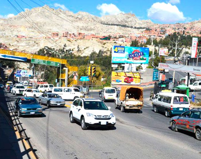 La señora Beatriz Aruquipa, quien utiliza diariamente esta ruta, comentó que al bajar del Teleférico tiene que caminar hasta Obrajes y en su recorrido no sólo debe lidiar con los vehículos en movimiento, sino también con el que una empresa expone para la venta de su mercadería en esta misma vía.