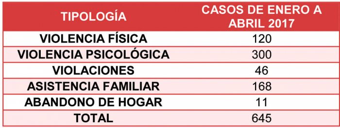 En segundo lugar está la violencia vinculada con la asistencia familiar, que representa el 26% del total, mientras que los casos violencia física son el 19% de los 645 casos registrados.