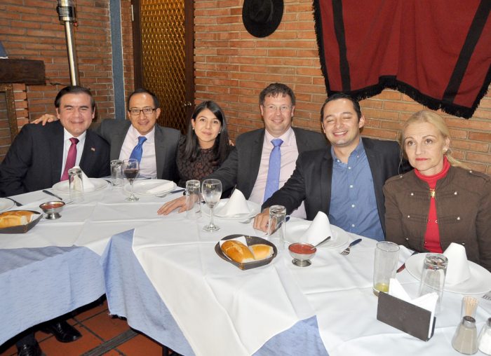 La Junta Directiva de la Asociación de Integración Diplomática de Bolivia, que preside la consejera de la Embajada de Colombia, Martha Patricia Carrillo, ofreció un almuerzo de despedida en honor de sus colegas Romann Datus, de la Embajada de Francia; Gabriel Villafuerte, de la Embajada del Ecuador, e Iván Ruiz Díaz, de la Embajada del Paraguay, quienes culminan funciones en nuestro país.