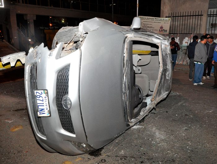 En la avenida Roma, calle 17 de Obrajes, el vehículo particular con placa de control protagoniza el vuelco de campana, dejando al conductor herido.