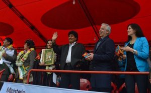 El palco oficial se ubicó en la plaza Camacho, donde invitados especiales, como autoridades de gobierno, departamentales, municipales, además de embajadores de diferentes países y sus familias vibraron con el colorido y la algarabía de los bailarines que hacían de las suyas por su paso en el centro paceño.
