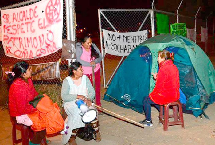 Cochabamba (Los Tiempos digital).- Los vecinos de las OTB circundantes a la laguna de Coña Coña y el colectivo No a la Tala de Árboles inició una vigilia permanente ayer a las 8.00 en defensa del lugar y en contra de la construcción del patinódromo para los Juegos Sudamericanos 2018.