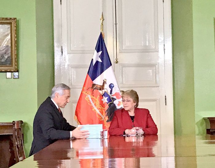 Por su parte, la presidenta de Chile, Michelle Bachelet, al momento de recibir una copia de la memoria que fue entregada a la CIJ de La Haya, señaló que la demanda chilena cuenta con argumentos sólidos.