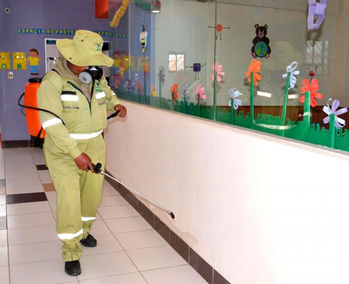 Con la intención de mantener libre de patógenos el establecimiento para proteger la salud de los niños, la Dirección de Gestión y Control Ambiental realiza la limpieza y fumigado de 18 unidades educativas del Distrito 6.