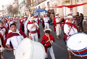 El carnaval del sud de Potosí inició el desfile de fraternidades que tomaron las calles del centro paceño. Esta comparsa integrada por residente tupiceños en La Paz, fue el primero en poner el ritmo a la jornada de la víspera, como agrupación invitada.