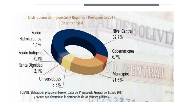 Un documento de la Fundación Jubileo destacó que en ese mismo período las instancias subnacionales (gobernaciones y municipios) destinaron 66 por ciento de los cuantiosos recursos al gasto corriente y descuidaron la inversión productiva.