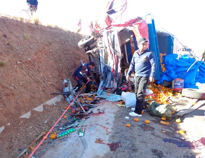 El pasado sábado a las 11:00 en la carretera La Paz a Copacabana a la altura de la localidad Palcoco, se produjo un vuelco de tonel con muertos y heridos.