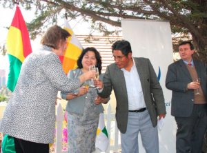 Las palabras de la Embajadora fueron seguidas de los discursos de congratulación de la vicecanciller Guadalupe Palomeque y del gobernador Félix Patzi.