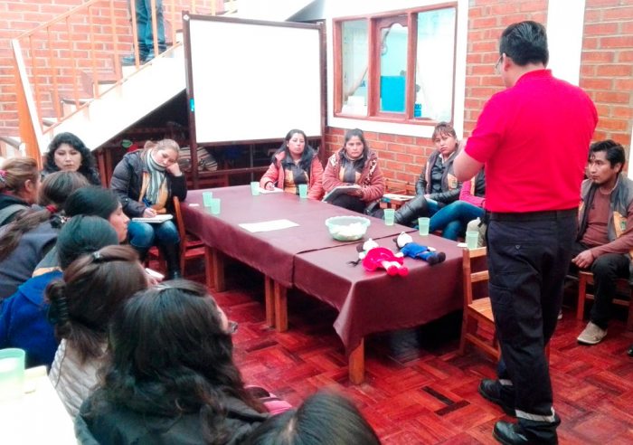 "Se les capacitó en temas de convulsiones, quemaduras, reanimación cardiopulmonar y atragantamiento para que ellas puedan responder y saber actuar bajo una emergencia que se puede registrar con los niños e incluso en sus propias casas", mencionó el enfermero del SUMA, Julio Cesar Apaza Quispe. (AMI)