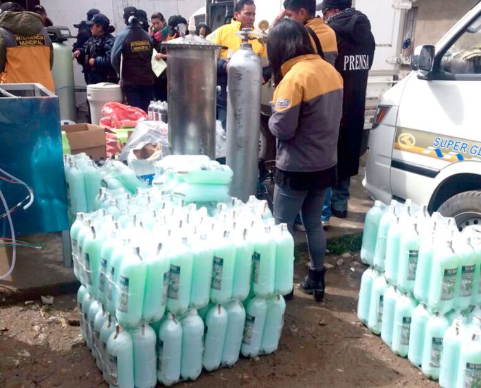 "En horas de la mañana, la Intendencia y la Guardia Municipal han hecho una importante intervención a una fábrica totalmente clandestina de bebidas alcohólicas. Esta actividad tenía maquinaria con la que realizaba todo el procedimiento, desde la elaboración del producto, el envasado, el sellado y el empaquetado", informó el secretario Municipal de Seguridad Ciudadana de la Alcaldía de El Alto, Dorian Ulloa.