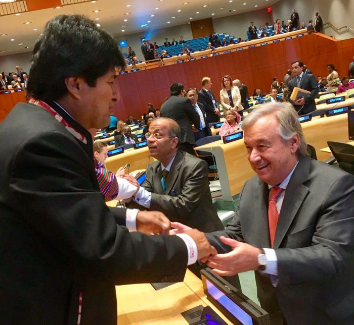 “A invitación del Strio General, @evoespueblo participa del círculo de liderazgo para acabar con la explotación y abusos sexuales en la ONU”, publicó a través de su cuenta oficial.