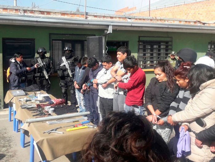 “Este grupo de delincuentes, fuera de tener antecedentes penales, fueron encontrados al interior de un domicilio con todos sus artefactos que utilizan para realizar diferentes atracos a joyerías", explicó el comandante Regional de El Alto coronel Julio Cordero.