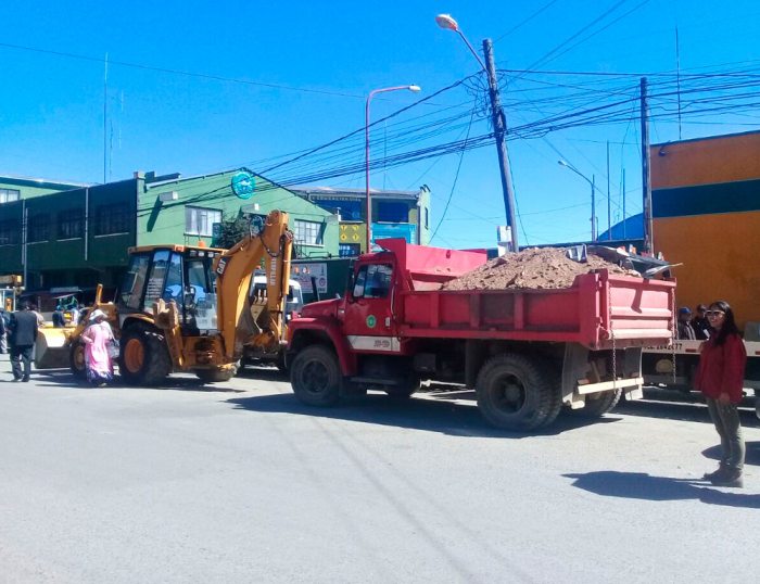 El Comando Regional de El Alto en coordinación con unidades especiales retuvo una volqueta y un tractor que pretendían vaciar tierra y escombros en medio de la vía en la avenida Juan Pablo II. En tanto los bloqueos que se presentaron fueron esporádicos y no impidieron las actividades urbanas.