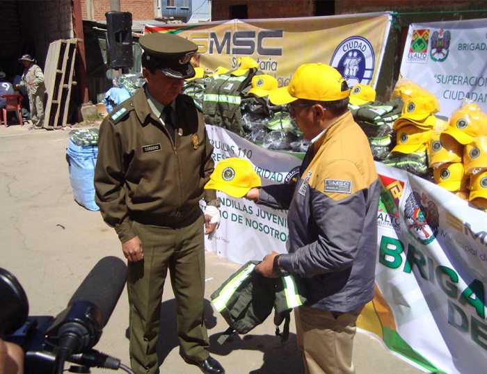 Con un costo de Bs 230 mil, la Secretaría Municipal de Seguridad Ciudadana, que dirige Dorian Ulloa, entregó material de equipamiento: chalecos, gorras y otros que beneficiarán a las brigadas escolares de la ciudad de El Alto, de la presente gestión.