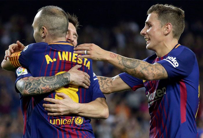 La Liga sigue encabezada por el Barcelona, invicto, con 25 de los 27 puntos disputados y ya con diecisiete victorias consecutivas en este torneo en el Camp Nou. Este sábado, ante el Málaga, se adueñó del marcador con rapidez, en un minuto y 53 segundos, y con polémica, en una acción que debió ser invalidada, porque Lucas Digne conectó con el balón ya fuera del campo, y que terminó en el gol de Gerard Deulofeu con toda la defensa del Málaga ya parada.