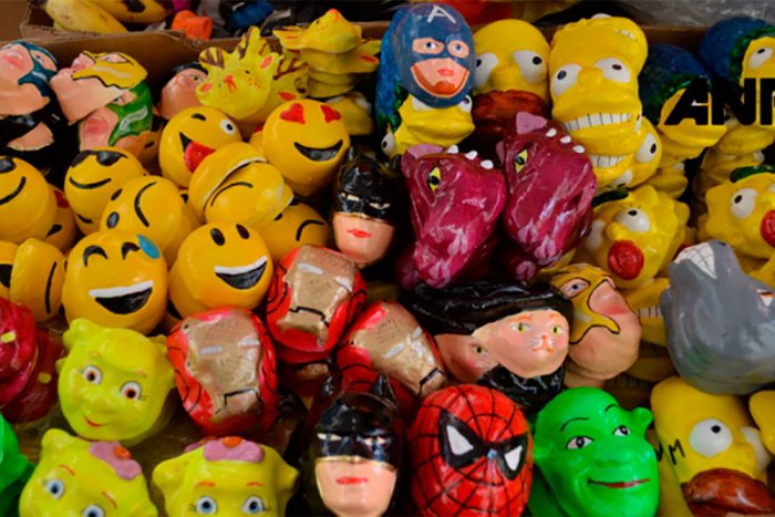 Virginia Poma, una de las comerciantes que ofrece las caretas de yeso en la puerta de la iglesia de Gran Poder en Max Paredes, relató a ANF que las figuras “novedosas” son un elemento importante para atraer clientes en este tipo de festividades, en especial a jóvenes y niños que gustan de estos personajes.