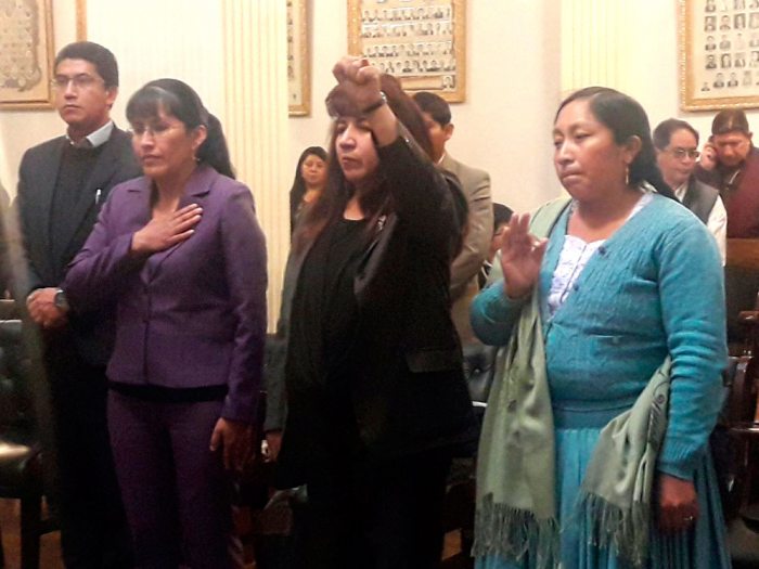 La presidenta de la Cámara de Diputados, Gabriela Montaño, posesionó ayer a las vocales departamentales Marianela Revollo de La Paz, Rosalía Quispe de Chuquisaca y Eulogia Flores de Potosí, quienes fueron designadas por el presidente Evo Morales.