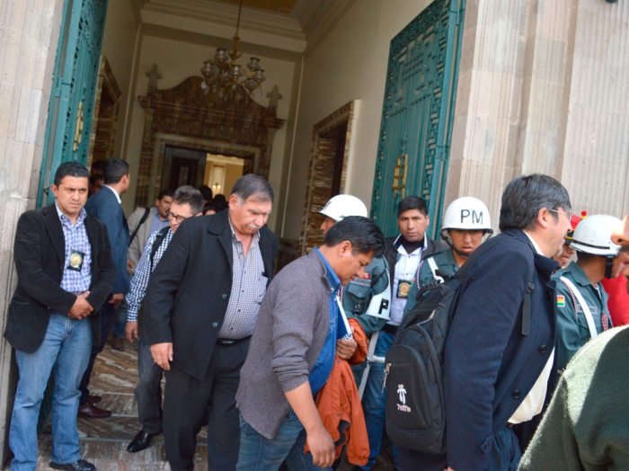 Algunos se excusaron señalando que se encontraban cansados luego de más de seis horas de reunión con el presidente Evo Morales, por lo que tenían la urgencia ir a descansar, mientras eludían a la prensa como podían para salir desapercibidos de Palacio Quemado.