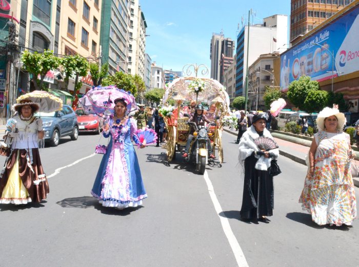 Paceños ataviados con trajes del siglo XVIII y XIX participaron en el “Desfile de Antaño” evocando a personajes y atuendos de la época republicana. El presidente del Comité Cívico Cultural, Nelson Larrea, refirió que durante 33 años se realiza esta actividad cultural que ya es parte de la tradición urbana en homenaje a la fundación de la ciudad de La Paz.