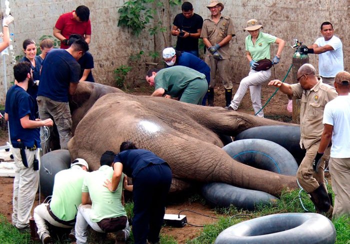 Uno de los especialistas que participó en el procedimiento quirúrgico fue del director de Servicios Veterinarios de Fort Worth Zoo de Texas, Carlos Sánchez, quien en el 2012 ya le había hecho el mismo tratamiento al elefante en el otro colmillo.