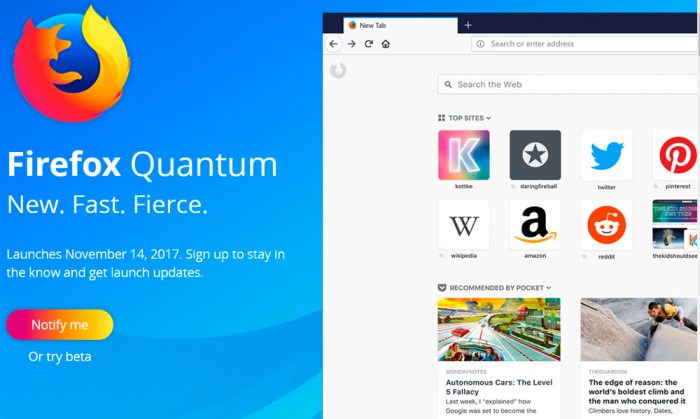 Noviembre es el mes elegido por Mozilla para empezar a distribuir la actualización de su navegador, por cierto, una de las más importantes de la historia reciente de Firefox.Trabajando con la tecnología de Quantum, la siguiente versión de Firefox v57 será una de las más rápidas que jamás haya tenido este navegador. Desde Mozilla indican que esta versión será hasta dos veces más rápida que la v52, lo que de ser cierto la convertirá en una clara alternativa a Chrome.