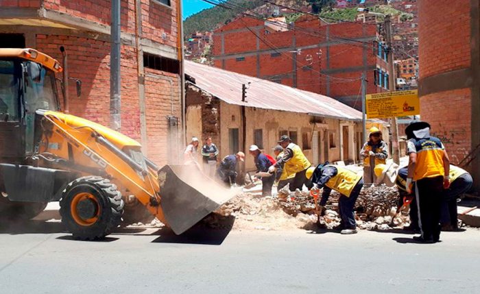 Ante esa realidad, el Gobierno Municipal movilizó 200 obreros para realizar el levantamiento de escombros en diversas calles de la ciudad de La Paz informó el director de Gobernabilidad, Francisco Cordero.