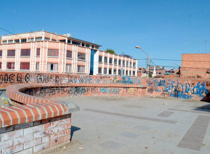 Mientras la única plaza del Minero, está abandonada por las autoridades municipales en el mantenimiento y el cuidado, debido a que se ha llenado de grafitis, además casi todos los espacios y los bustos que fueron puestos en memoria de algunos dirigentes mineros se encuentran con panfletos y sucios, porque no existe personal de la Subalcaldía, en este caso, que pueda cuidar este espacio de los pocos que existen en el barrio.
