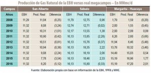 “Las puntualizaciones anteriores ponen en evidencia que la producción de gas cayó de 61.34 MMM3/D el año 2014 a 56,6 MMM3/D el 2016 y a 53 MMM3/D el primer semestre de 2017, cuando la meta oficial previsa era producir 70 MMM3/D. La caída de la producción tampoco puede atribuirse a que Brasil haya comprado menos volúmenes, porque este fue un fenómeno reciente, concretamente del año pasado, en tanto quela producción empezó a caer a fines del año 2014”, señaló el analista en un artículo de opinión.