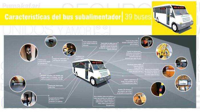 Los actuales buses Pumakatari cuentan con 32 asientos (12 preferenciales) mientras que los pequeños cuentan con 11 asientos para sentados y todos preferenciales. Serán vehículos inclusivos y contarán con espacios para sillas de rueda.