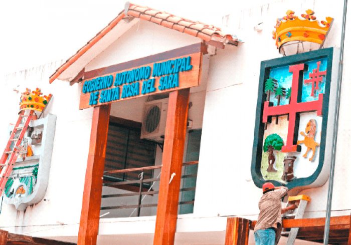 Santa Cruz.- “En Santa Rosa somos bravos, pero de boca. Cuando pusieron los escudos hubo quejas, pero no pasó nada y nadie hizo nada. Es que aquí manda el MAS”, dice un hombre mayor, que pasa su mañana sentado en la plaza de Santa Rosa del Sara, justo al frente de la Alcaldía, donde dos obreros colorean los escudos que habían causado polémica.