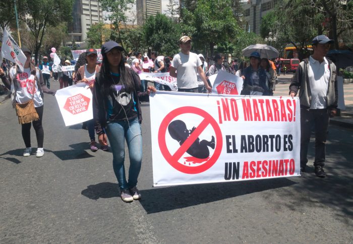 os representantes de la Iglesia evangélica y católica del país marcharon ayer, exigiendo una audiencia con el presidente Evo Morales, para pedir que se retire un artículo del proyecto de ley del Código del Sistema Penal que amplía las causales del aborto legal en el país.