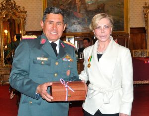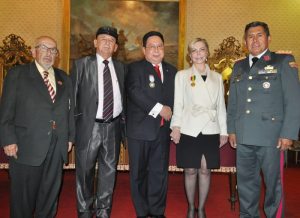 En la ceremonia estuvo presente la directora del Museo Histórico Aviadores del Chaco, María del Carmen Pérez Falabella, del Paraguay, quien recibió la condecoración "Guerrilleros de la Independencia".