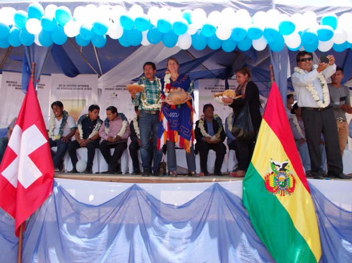 Cochabamba.- Los municipios del Valle Alto de Cochabamba recibieron en Tolata, el pasado 22 de noviembre, un conjunto de equipos y estudios que les permitirá mejorar su gestión de residuos sólidos y de tratamiento de aguas residuales, gracias al apoyo del proyecto Gestión Ambiental Municipal de la Cooperación Suiza en Bolivia.